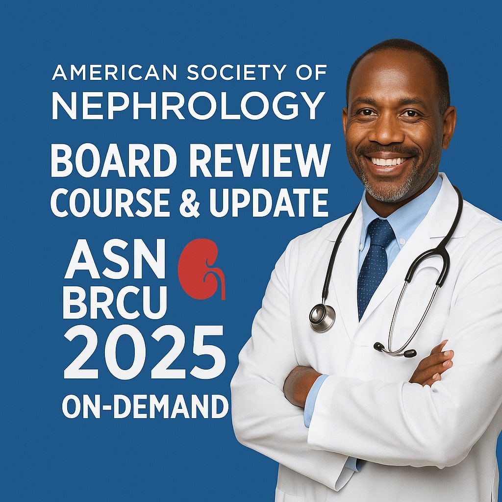 The ASN Board Review Course & Update (BRCU) 2025 is now available On-Demand. This comprehensive course by the American Society of Nephrology provides the most up-to-date nephrology knowledge, clinical insights, and board preparation resources. With online streaming access, you can review lectures, high-yield cases, and expert discussions anytime, anywhere.
